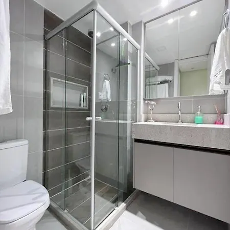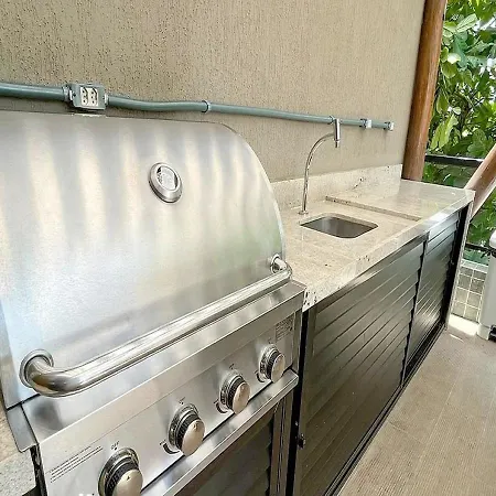 Conforto Total Duplex Com 2 Quartos A Poucos Passos Do Mar comes with a fully-equipped kitchen where guests can cook their own meals. A swimming pool can be found on the premises.